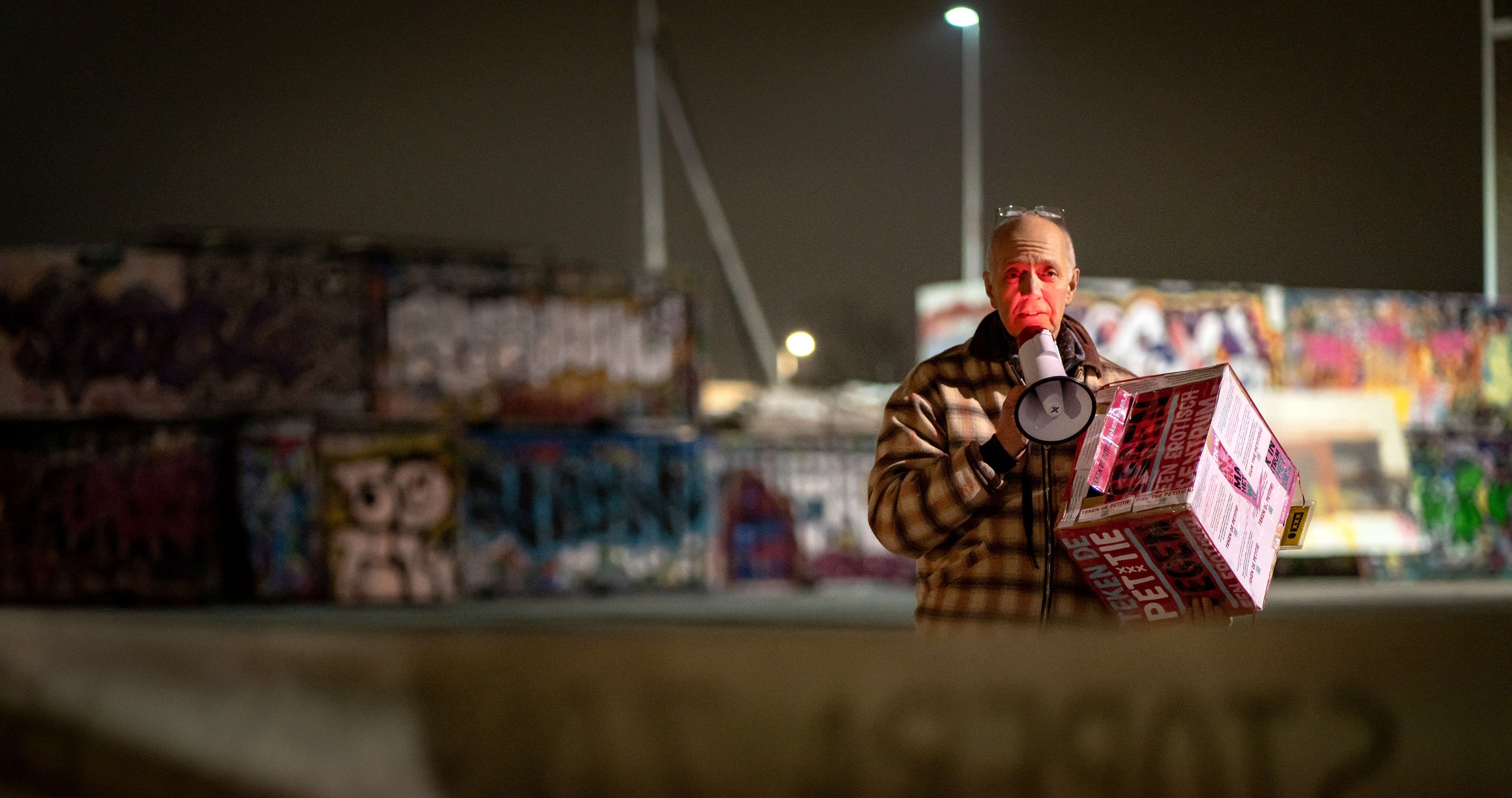 Aanhangers van Extinction Rebellion na afloop van een gesprek met de Rotterdamse burgemeester Ahmed Aboutaleb over vergroening van de Rotterdamse haven. Het gesprek vond plaats naar aanleiding van een recente actie van XR in het havengebied. ANP KJELL HOEXUM